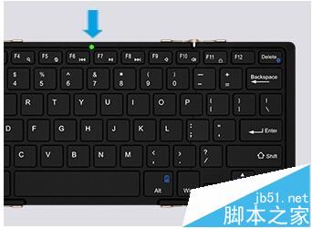 1、首先翻開HB099折疊鍵盤,翻開就是自動打開電源,綠燈亮了之后,就表示鍵盤是開啟狀態(tài)。