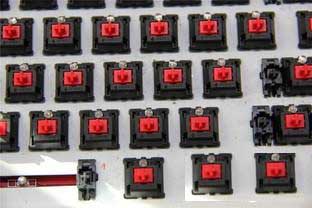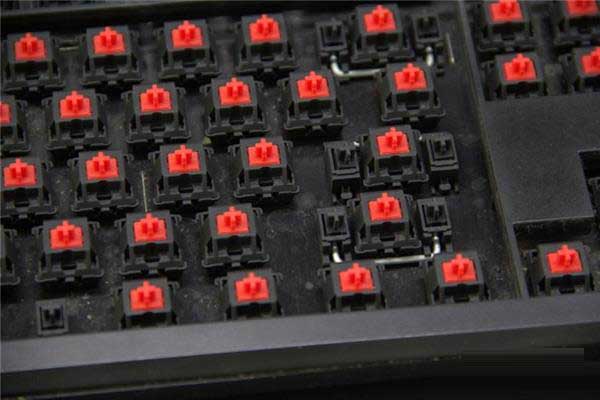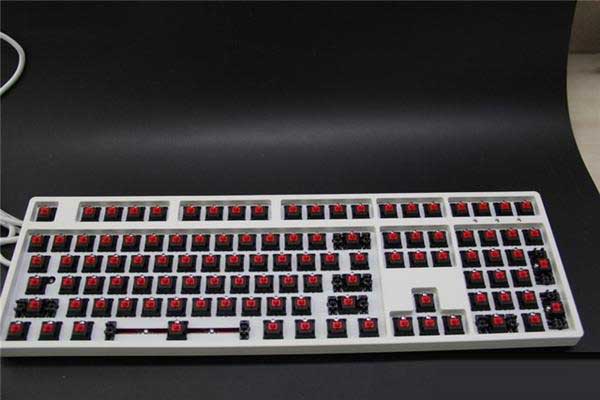 在白底鍵盤的拆卸中,我們可以看到白底鍵盤的灰塵較少,并且主要分布在軸體附近。