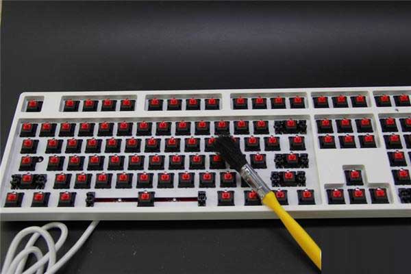 我們先用毛刷,將分布于軸體之間的毛發、灰塵等不易清理的細碎物品,洗刷干凈。一般來說,絕大部分的雜物在經歷過洗刷后,都可以被輕松處理掉。