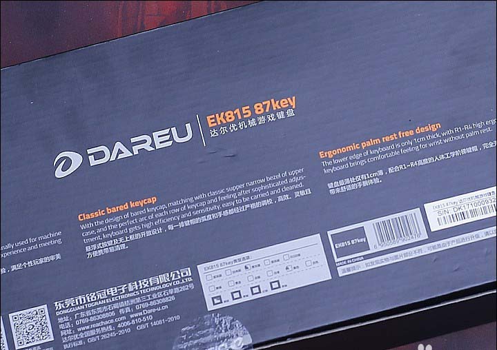 1、達爾優EK815 87鍵鍵盤的包裝設計采用了純黑色的搭配,帶有金黃色的D標示,包裝背面帶有產品相關訊息,看起來簡潔鮮明。