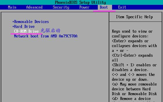 另一種光盤啟動界面 ,那么只要將cdrom選擇到第一個位置即可。
