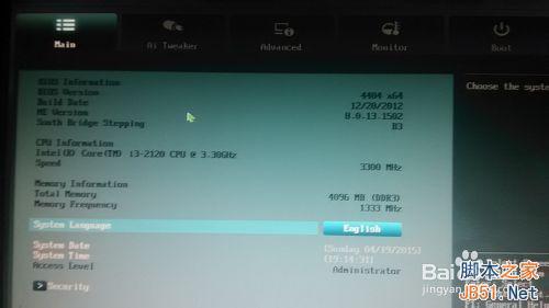 3、進入bios設置界面,首先看到的是main(概要)選項卡,默認語言是English,當然也可以手動選擇為簡體中文
