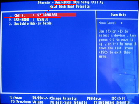 Advanced BIOS Features(BIOS進階功能設定),通過鍵盤的“上下左右鍵”調節位置選中進入, Hard Disk Boot Priority(硬盤引導順序):這個是最關鍵的了,一般你之前插入了USB設備后, 這里進去就會顯示USB的磁盤信息,然后通過鍵盤上的“+”(可以調節到最上面,也就是優先啟動)