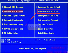 找到 Load Fail-Safe Defaults ,按方向鍵選中后回車,提示是否確定,按Y,回車。 最后選擇Save&exit step對以上的步驟進行保存。