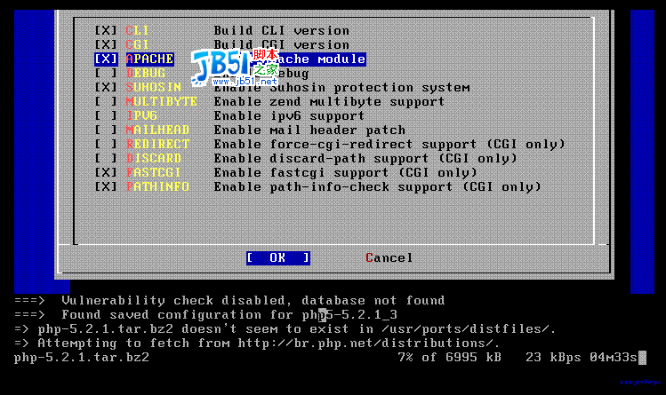 apache2的ports目錄在/usr/ports/www/下,進入apache22包,make install clean開始安裝