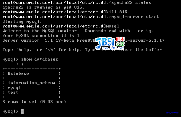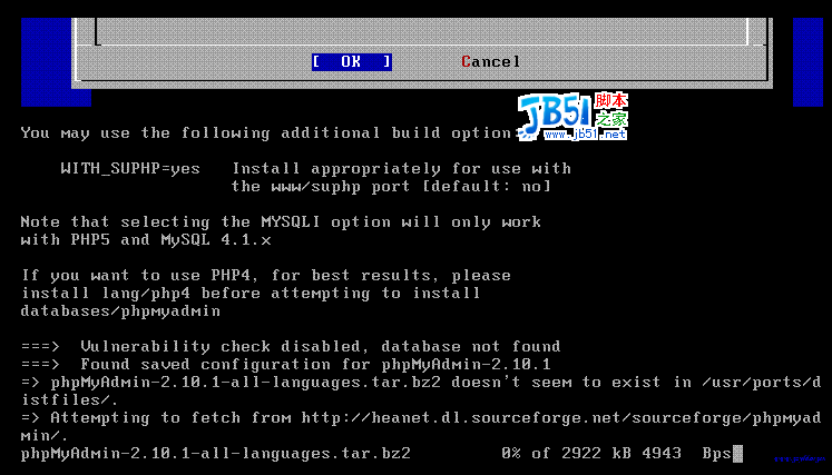 freebsd6.2系統用前面日志介紹的最小化安裝的FB,下面開始在上面搭建一個web平臺,包括apache+mysql+php+phpmyadmin:
