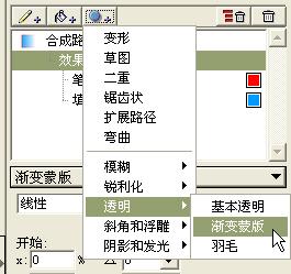 FreeHand MX可以給整個對象或選定的對象屬性添加新的矢量效果(如彎曲)以及變形和光柵效果(如斜面、模糊和透明度),并有多種類型可供選擇,有多個選項可供調(diào)節(jié)。