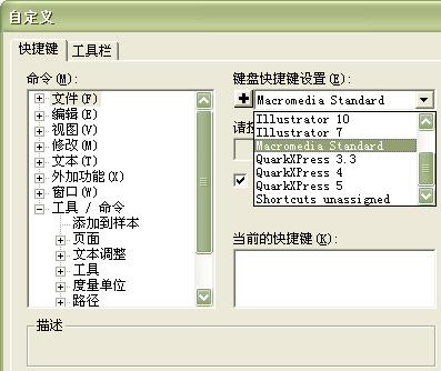 運用鍵盤快捷鍵能夠很好的節(jié)省時間,提高速度。FreeHand MX 的每個主菜單命令都有快捷鍵,可加快您的設(shè)計和制作工作,您也可以自定義自己的快捷鍵。