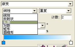 新的漸變填充更加豐富,為您提供了更多的漸變選擇。漸變類型有線性、放射、輪廓、對數(shù)、矩形和圓錐形等多種,每一類型還有常規(guī)、重復(fù)、反射、自動大小等多種方式,可謂豐富多彩。圖23此外,漸變填充的對象還顯示手柄,因此可以直接在對象內(nèi)編輯填充。
