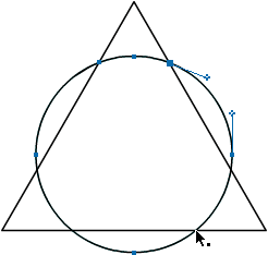 現在選擇三角形,用刻刀工具在三角和圓形交迭的地方移動,若看到鼠標中出現一個小圓,這表明指針對齊到 交迭點上,點擊鼠標進行切割。