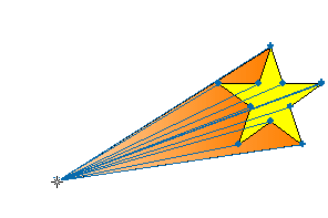 步驟五:將該聚集點拖到外面。現在你看到五角星的每個頂點都向外延伸出線段并匯聚于一個消失點,形成一種縮放的效果。但現在還沒完,呵呵。