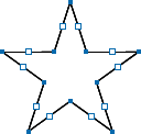 步驟三:將復制品解組,用鼠標把它框選并執行 modify->split ,將五角星打散成 10 個首尾相連的獨立線段,再次將它們框選,執行 X tras menu->distort->add point (也可在工具欄上找到),為每個線段增加一個節點。結果如圖所示。