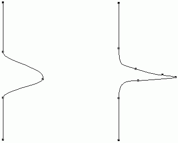將控制點拖曳至距離轉折點、曲線或連接點愈遠,曲線會愈明顯。