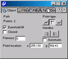 在「點位置 X 和 Y」文字方塊內編輯數值,以變更點的位置。數值是從頁面的零點開始測量,位於預設度量單位中。