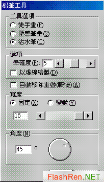 7 在「沾水筆」中,選取其他的「寬度」和「角度」選項: