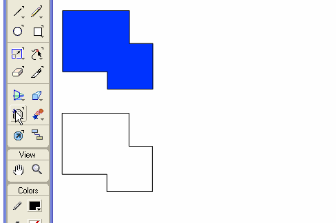 隨意畫了一個圖形,將其復制一個,置于下方,注意其中一個有填充色而另一個沒有,按圖中方式使用Trace工具,會發現兩種不同結果,有填充色的會按你圈定的范圍切出一塊填充的圖形來,而沒有填充的圖形在被trace之后似乎只切出一條邊線,事實上這條邊不是真正意義上的邊線(雖然它看起來很象),而是一個封閉圖形,默認黑色填充,你用選擇工具在它的任一節點上一拖就看出來了。