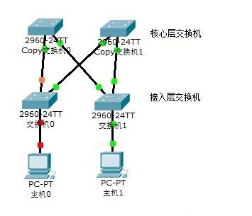 3、最后用直通線連接交換機和電腦,對核心交換機進行雙冗余設計