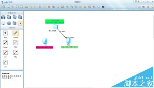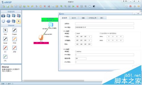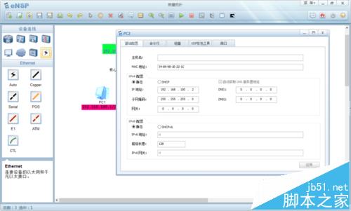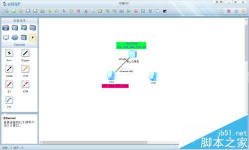 1、打開模擬器,創建一臺交換機和兩臺PC、開機,配置好IP地址,一臺PC備用。