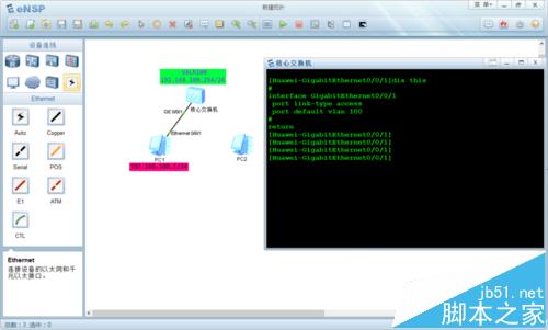 2、交換機配置Vlan,把端口模式改為Access模式,把端口加入到Vlan100里,測試PC到交換機網通信是否正常。當前沒有路由器網管配置或不配置沒有關系。能ping通交換機。