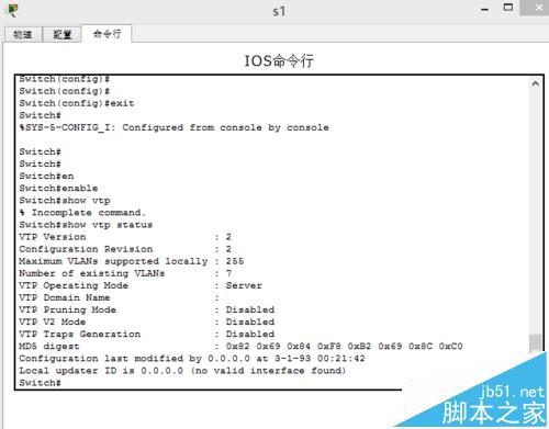 5、在S1 上創(chuàng)建VLAN,檢查S2、S3 上的VLAN 信息,配置命令是: