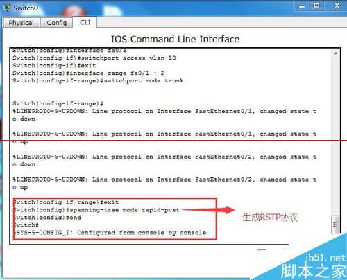 4、將STP協議轉換成RSTP協議----在特權模式下輸入spanning-tree mode rpaid-pvst