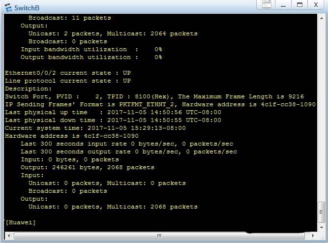 3、查看接口display interface 簡寫 dis interface,可以通過按Ctrl+C停止