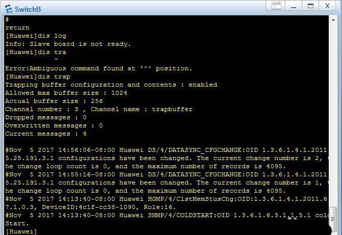 7、查看告警信息 display trapbuffer 簡寫 dis trap