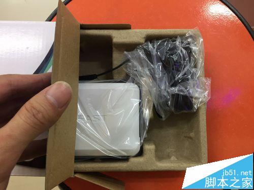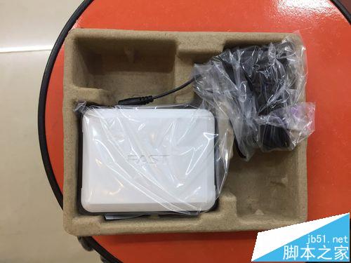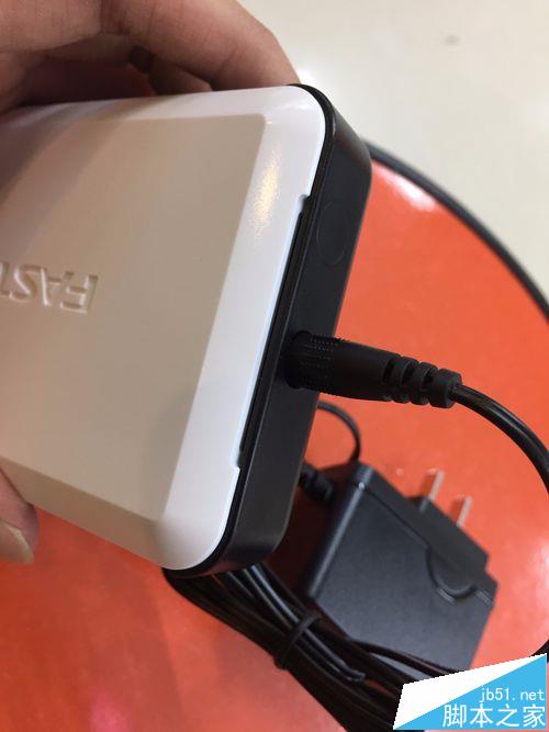 9、我們可以看到這個圓孔就是和電源線相連的插上就可以,最后在插入到電源中,插網(wǎng)線就可以使用了。