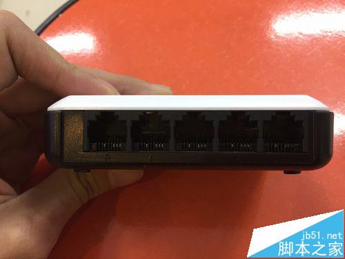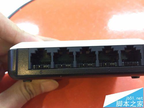 7、這個就是插網(wǎng)線的地方,下面還有數(shù)字一共有5個孔,除了一個主網(wǎng)線其他四個都是可以分出去的。交換機最大的好處就是一個網(wǎng)線分成多個網(wǎng)線。