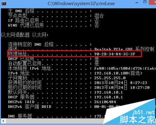 在Windows的計(jì)算機(jī)中,MAC地址叫做物理地址(physical address),下面的方法適合在Windows XP、Windows 7和Windows 8電腦上使用,具體操作方法參見下文: