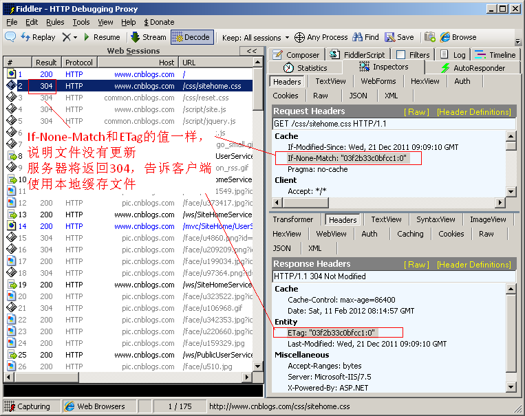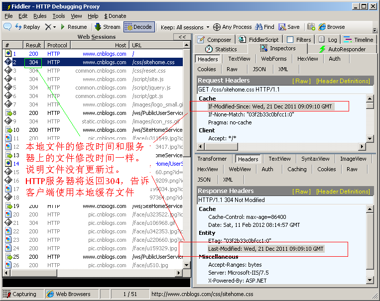 例如打開博客園首頁, 發現很多 Response 的status code 都是304