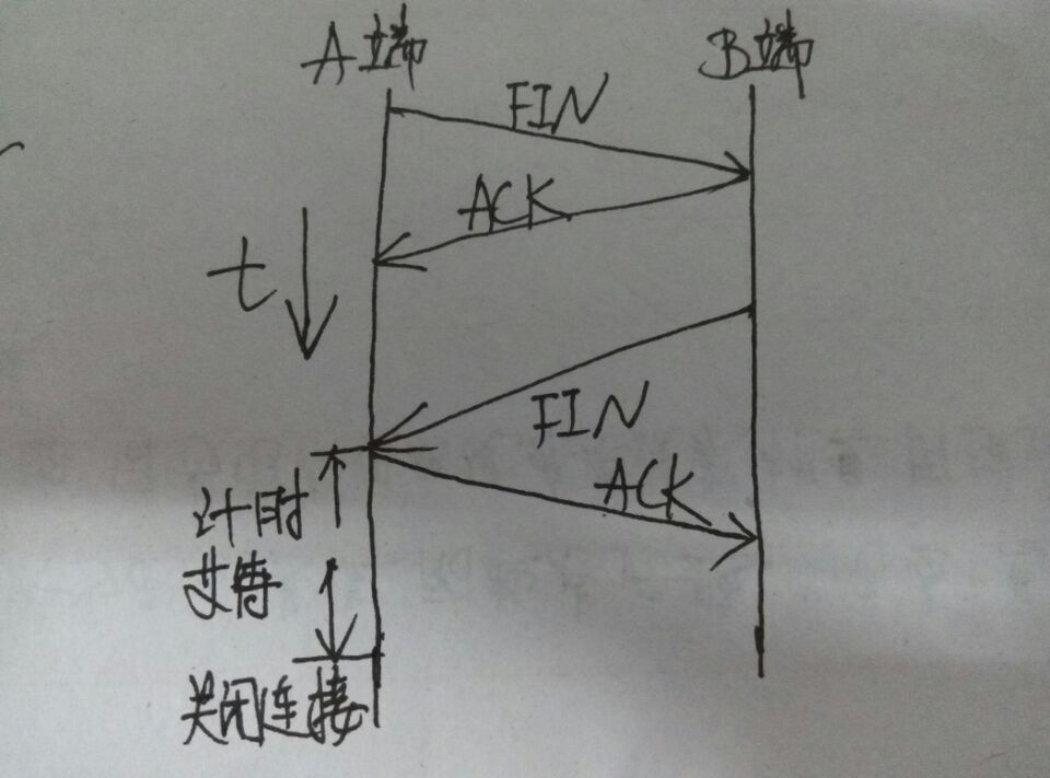 A端收到B端發送的FIN后,會向B端發送確認ACK,然后經過兩個MSL時長后斷開連接。