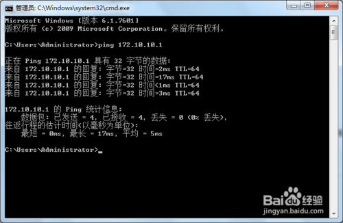 8、至此,用同樣的方法,在其他電腦上設置好,一切就完成了,完成后,再用ping 測試一下是否暢通.