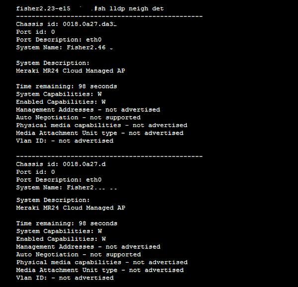 我在前面提到,我的環境中大部分是思科設備,但是我們也在一些特殊位置使用了其他供應商的產品。我們在美國及海外的大部分分支網絡中使用了Meraki的產品,但是與其他第三方設備一樣,Meraki接入端(AP)無法通過CDP查看到交換機的連接情況。換言之,“show CDP neighbors”命令無法查看到它們的信息。