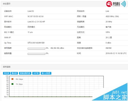 3、登錄無線網橋后臺,可以看到無線網橋當前運行狀態頁面。在此您可以查看網橋的基本設置以及運行數據。