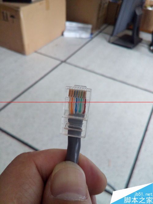 6、將網線在適當的位置剪斷,大約留1cm網線的位置剪斷,這里要注意一下,留短了,網線8根芯被水晶頭的銅片壓不到,留長了壓不到表皮,就空易斷。