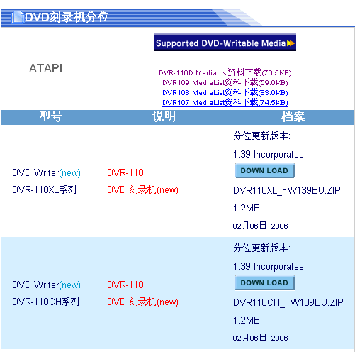 上面是分位的更新資料,下面是最新分位在網站上發布的日期――注意不是分位本身的更新信息,更新資料只到1.37版本(06年1月10日),而現在最新的是1.39版本,我們還需要注意分位分XL和CH版本,注意你手頭機器的具體型號是什么,不要下錯喲!
