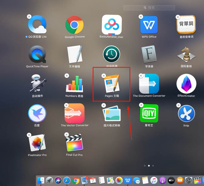1、首先打開電腦的『啟動臺』,再打開『Pages文稿』,如圖