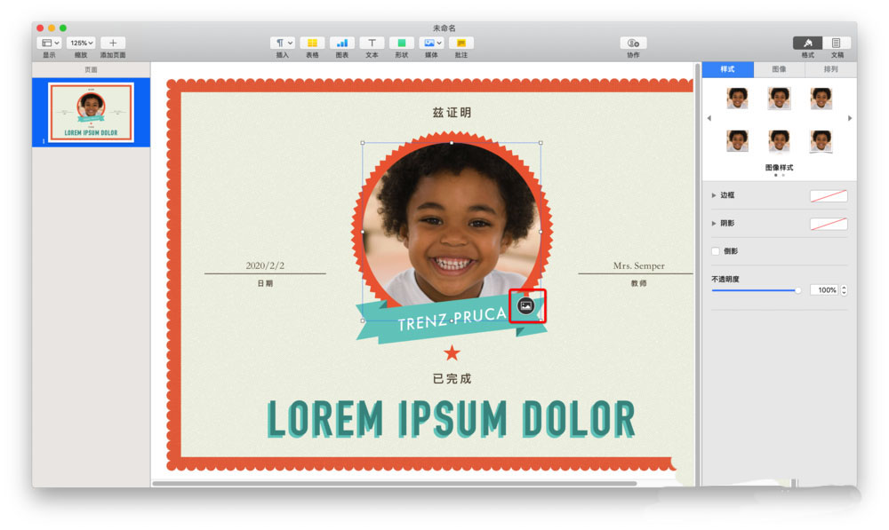 5、這里我們以兒童證書為例,打開模板后我們可以選擇要更換的圖片,如圖