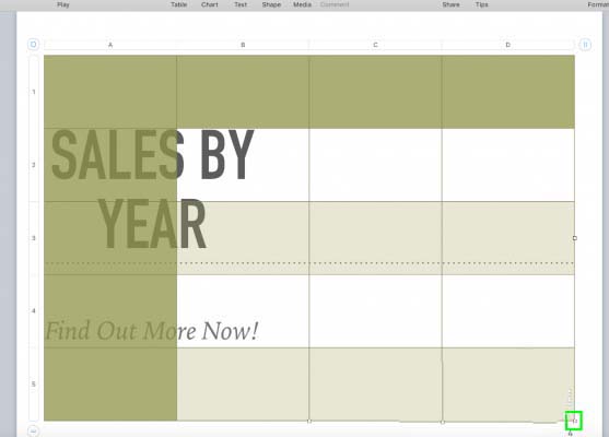 3、單擊并拖動(dòng)表格右下角的方框以調(diào)整其大小。 Keynote傾向于將表格放在現(xiàn)有內(nèi)容上。