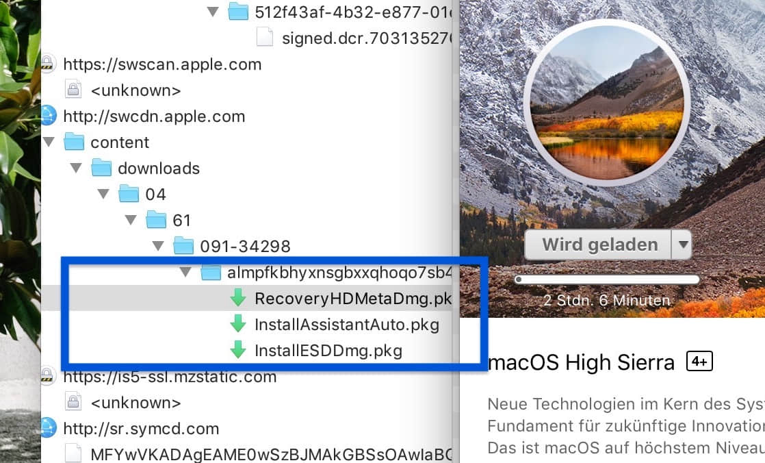 @xinhangliu 同學(xué)還特意驗證了這個問題,手動下載 RecoveryHDMetaDmg.pkg 后移入 /Library/Updates/091-34298 路徑下,自動合并后,/Applications 下的 macOS High Sierra 安裝包就會變成大家普遍認可可以正常安裝的 5.18 GB 版本了。