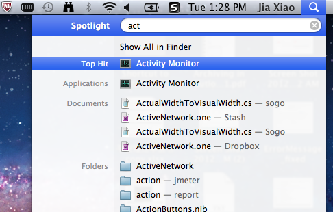 1. 在Spotlight中搜索 activity, 可以快速啟動Activity monitor