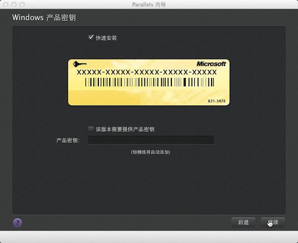 3、在此步驟中,我們可以選擇“快速安裝”,在虛擬機安裝Windows 8 時會提示您輸入安裝密鑰,(在產品密鑰文本框中鍵入已購買的密鑰,或取消選中“該版本需要提供產品密鑰”,在Windows 8安裝完成后激活)。