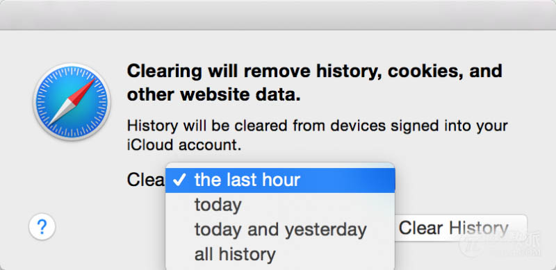 Safari 8 的清除歷史記錄也有了一個小更新,和 Chrome 一樣,現在可以按時間段來選擇性地刪除歷史記錄等隱私信息。