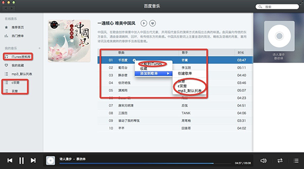 當然,有了百度音樂Mac版,iTunes這個播放器就沒啥用了,你可以直接在百度音樂Mac版當中的——iTunes資料庫,查看并聽這些歌曲,不需要再打開iTunes來聽歌了。