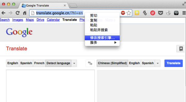 第一步:Chrome 有一個功能是將某個網站作為搜索引擎使用,而通過與 Google 翻譯的搭配,我們就可以在 Chrome 的地址欄中進行翻譯工作。