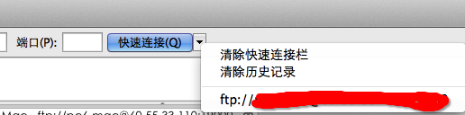 最后,上傳和下載和Windows系統都差不多,直接將文件拖進去即可上傳。鼠標已達到所需文件右鍵即有下載摁鈕,和Windows殊無二致。至于下次訪問,選擇歷史記錄就可以直接訪問服務器啦!歷史記錄在哪里呢?在快速連接摁鈕的旁邊,如下圖所示: