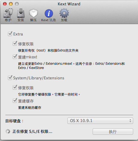驅動程序info.plist替換好后,用小白人程序修復系統,如圖。