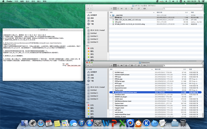 4.去/System/Library/Extensions/RT2870USBWirelessDriver.kext/Contents 下進行替換原文件。