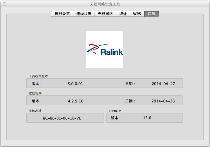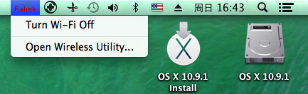 “Ralink”無線網絡設定工具相關狀態,替代蘋果系統:系統偏好設置-網絡的功能。
